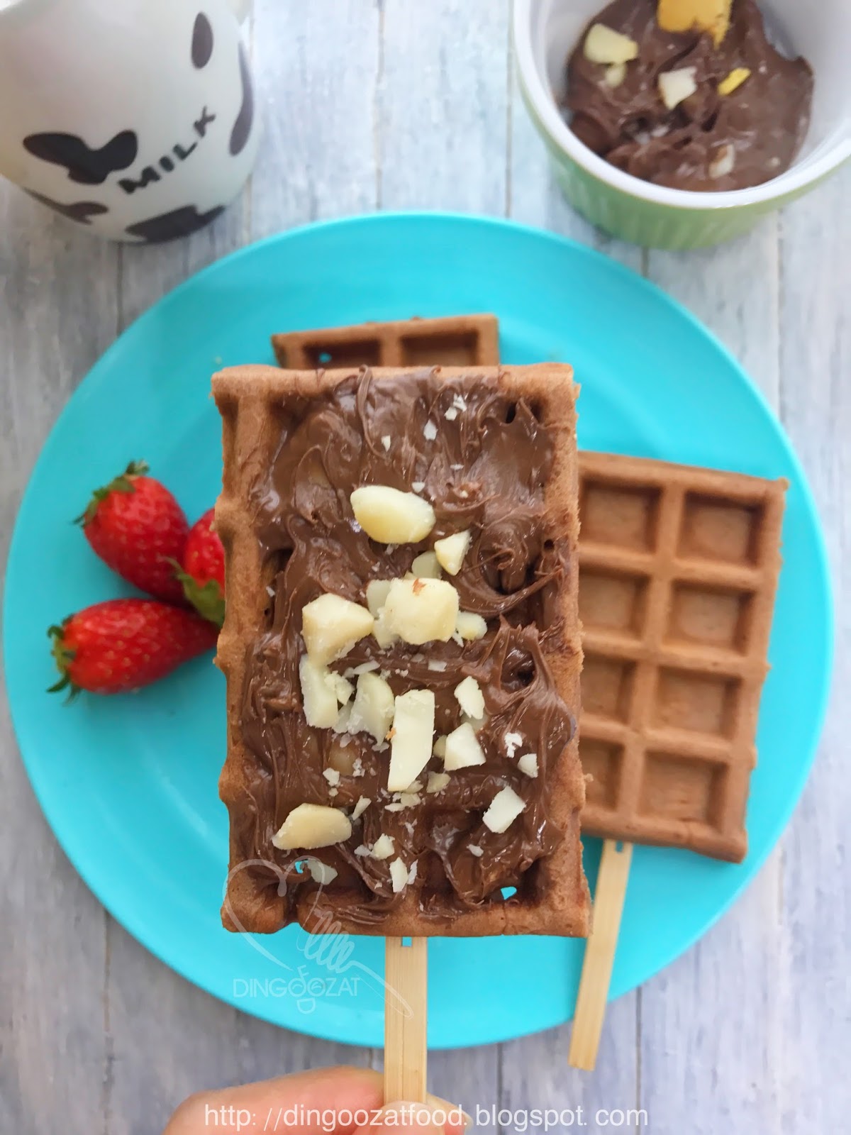When I'm serving these at home, I made the less sweet waffles topped with some hazelnut chocolate spread and chopped macadamia nuts. Also taste good with ice cream.